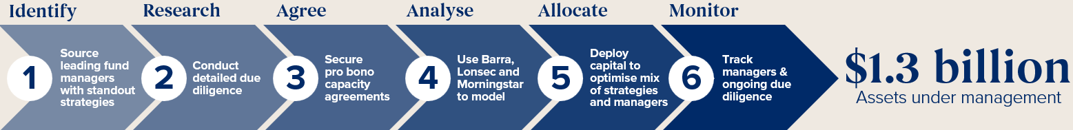 | Number of managers | 17 Australian fund managers | 16 Global fund managers | 6 Australian fund managers in the Australian investment portfolio and 6 global fund managers in the global investment portfolio |
